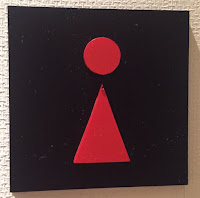 Desde hace varios años el blog Fuera del servicio recoge cientos de carteles utilizados para indicar la ubicación de los baños, servicios, wc, toiletes… de bares, restaurantes, espacios públicos, etc. Entre todos ellos, los hay que utilizan formas geométricas básicas, y de ellos algunos utilizan el triángulo para los dos carteles. Algunos ejemplos los mostramos a continuación: